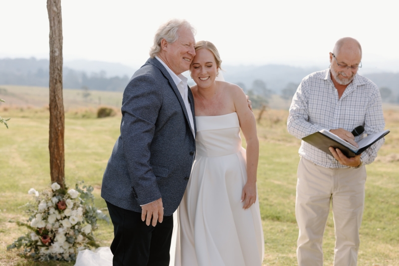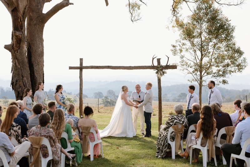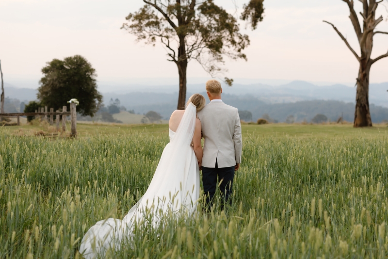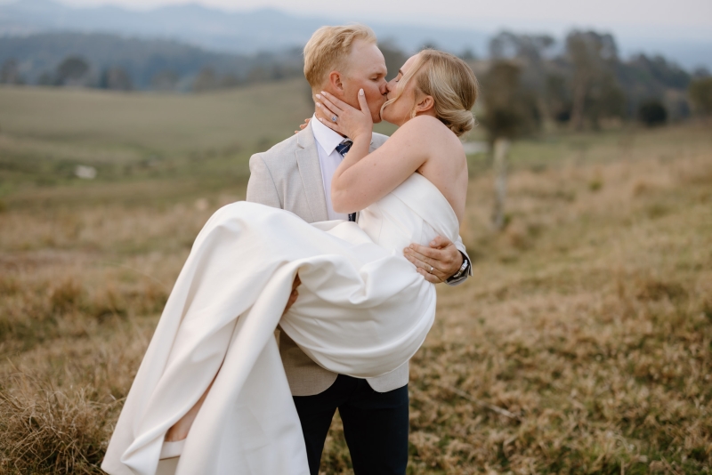 Their path to marriage started the same way Lindsay’s parents did: with a pair of gumboots! “Lindsay had organised a weekend camping trip away, but didn’t tell me where. Despite my many attempts to find out where we were going, he wouldn’t let it slip. We travelled a couple of hours from home (Emerald) and ended up at Blackdown Tablelands. We spent the Saturday doing the walks around the national park and exploring the gorges. We found some beautiful waterholes where we went swimming. That afternoon, we found a 4WD track and found a spot on the escarpment with a beautiful view to hang out at for the afternoon. We spent the afternoon reading our books. At sunset, Lindsay went to the car to get some warmer clothes and came back with a large parcel. Inside the parcel was a pair of gumboots. He started telling me that when his dad proposed to his mum, he got her a pair of gumboots and said: “If you’re coming with me, you’re going to need a pair of these”. I tried on one gumboot and then the ring box was tucked into the other gumboot. Lindsay got down on one knee as the sunset and said, “If you’re coming with me, you’re going to need a pair of these,” and asked me to marry him. The ring is my grandmother’s, who passed away in 2007!”