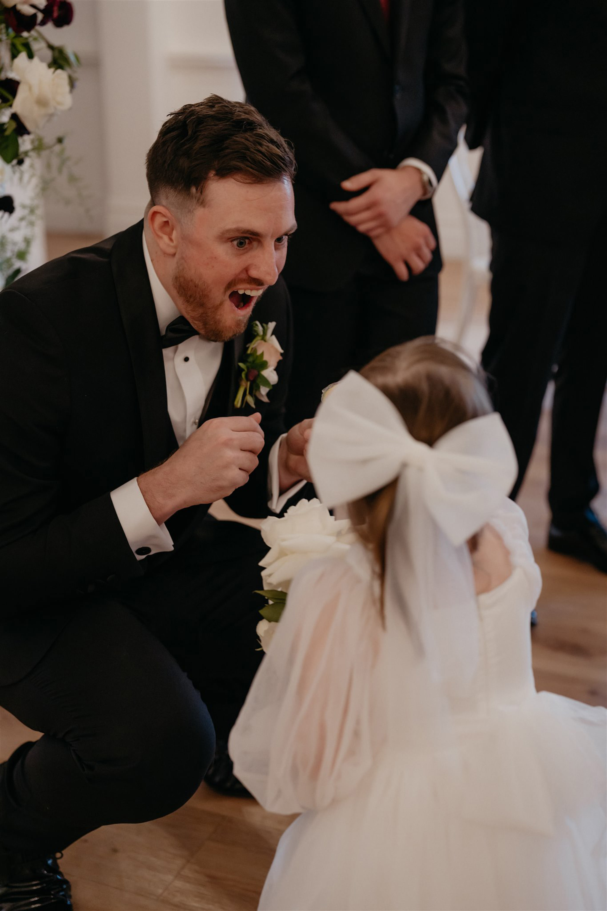 We'll never get tired of seeing couples do things their own way, and Alex and Chris leaned all the way in. Their winter micro wedding in The Rocks was softened by grey skies and brought to life with the richest pops of red, from roses to heels to the Rocks themselves!⁠