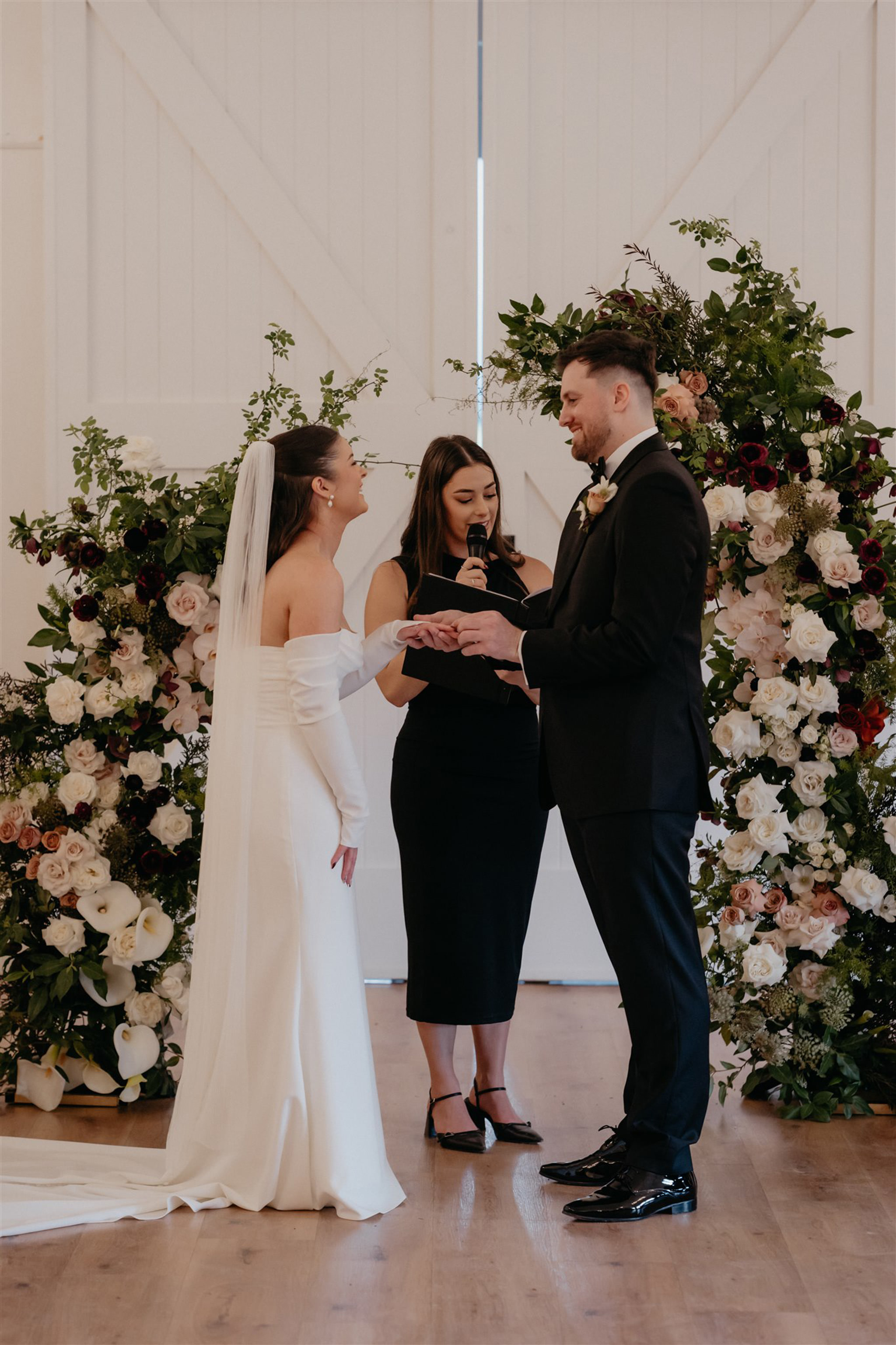 Photographer: @ninahamiltonphotography / Engagement Ring: @melissa_harris_jewellery / Wedding Ring: @melissa_harris_jewellery / Groom's Attire: @mawsonossa / Catering: @seasonandfire / Styling: @freyr.studio / Flowers: @Murphybloom / Venue: @Mayfieldestatetas / Band: @oberonlane / Celebrant: @rachael_calvert_weddings⁠