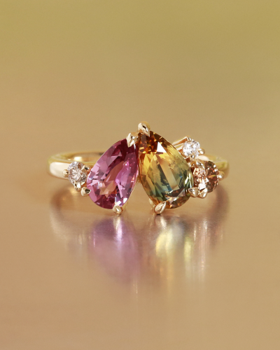 A lot of our work is shaped by asymmetrical beauty, unexpected colour and form, and the natural qualities of the stones themselves. We work with natural, ethically sourced gemstones, and we love pieces that feel bold, playful and luxurious, while still being deeply personal.
