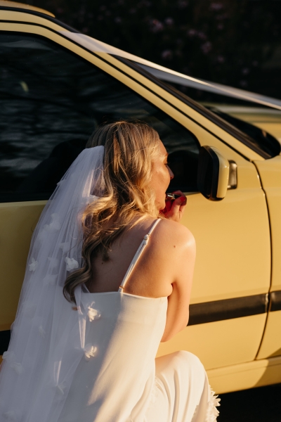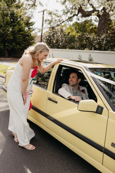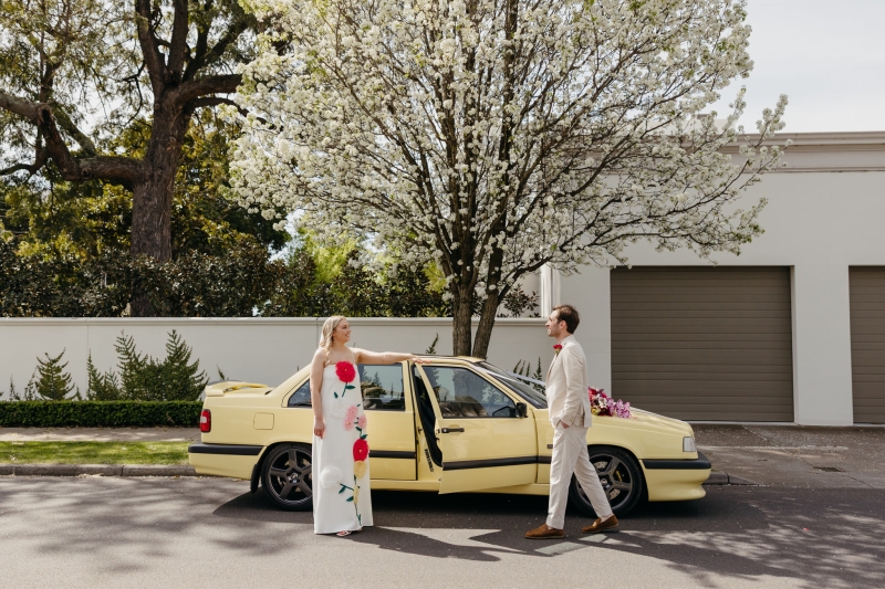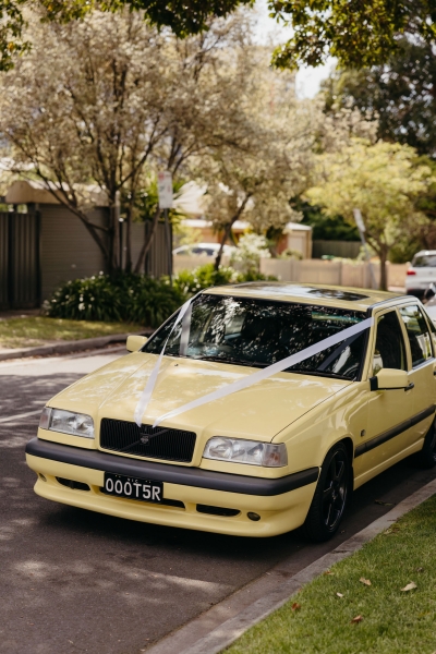“1. Elliot’s beloved vintage yellow Volvo – Elliot drove us to the wedding in his car. As if anyone else would be trusted at the wheel!