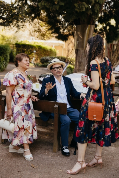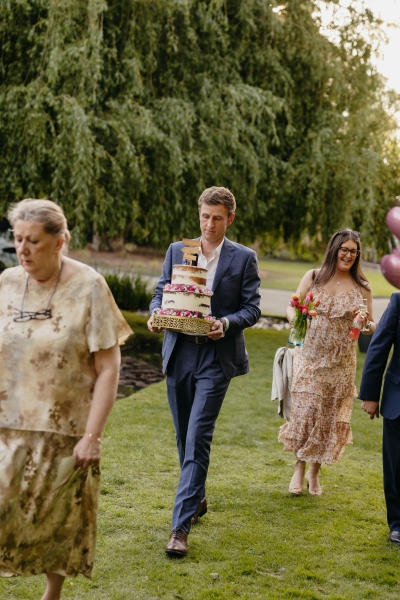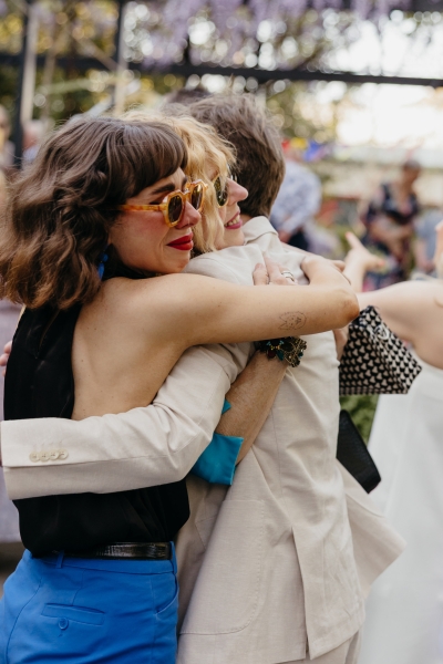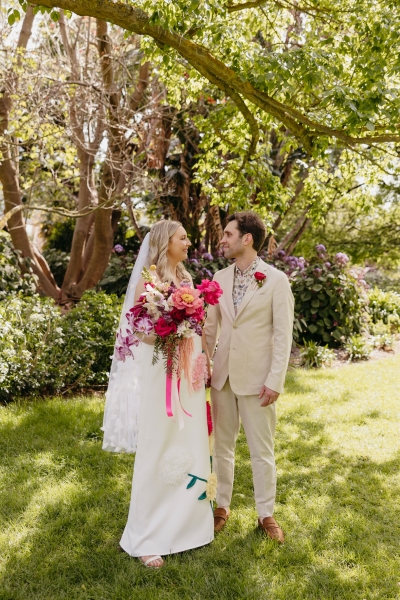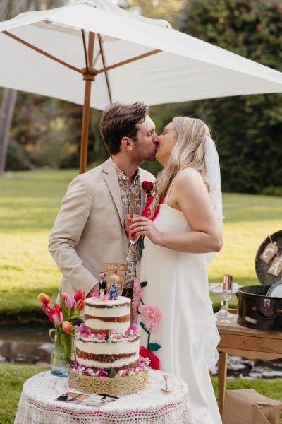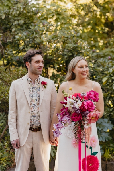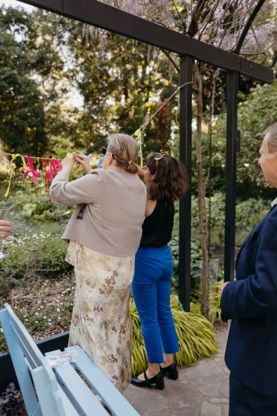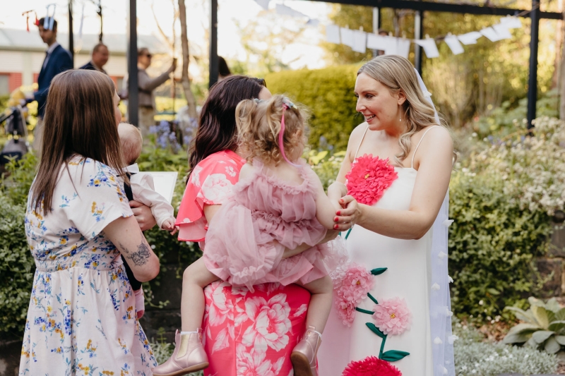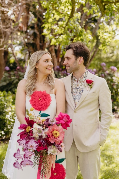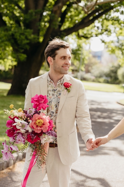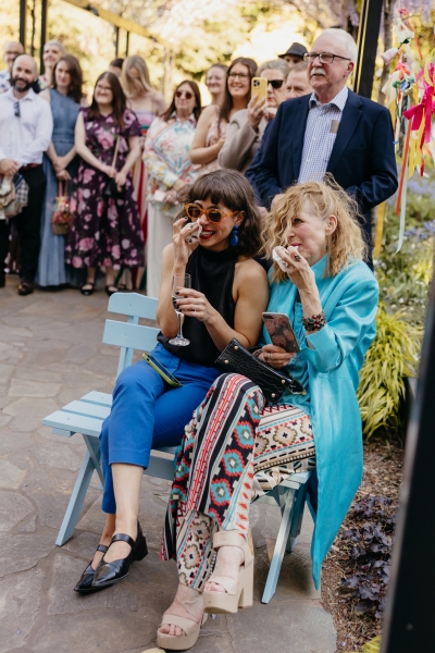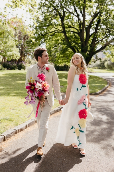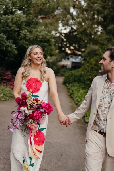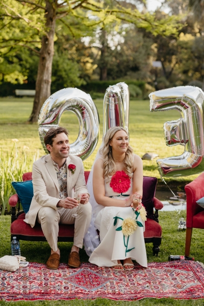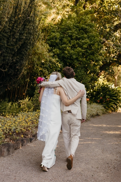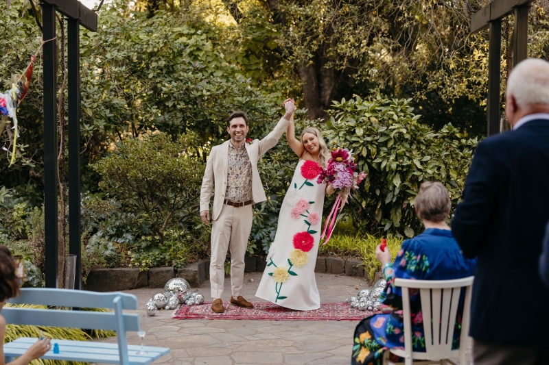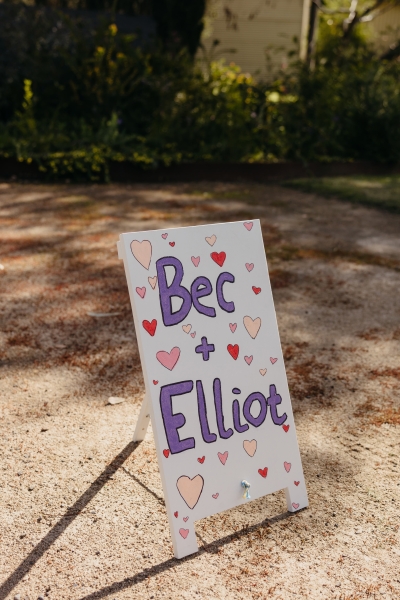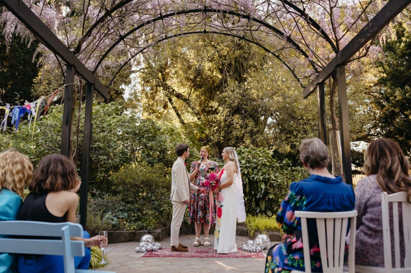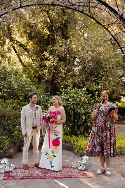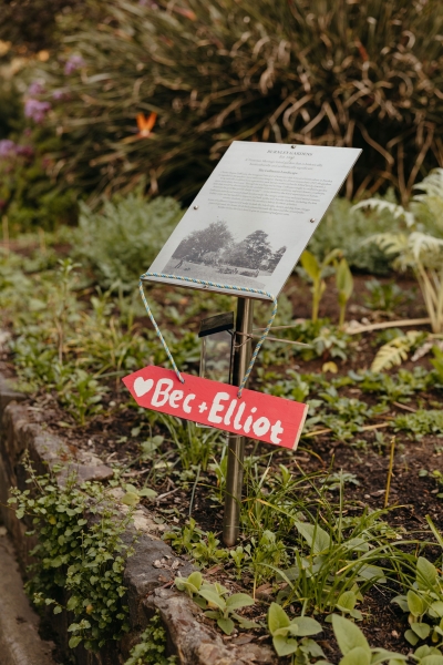 Megan Jordan was the celebrant for Bec and Elliot, lighting up the gardens with her bright humour and storytelling. “Elliot and I did not do individual vows to each other, as this would have felt too emotional. Instead, Megan had asked us to answer some questions about each other privately, and they were used to write up a section that was used in place of vows. eg, how you would describe your partner, things you most loved about them, etc.,” Bec explained.