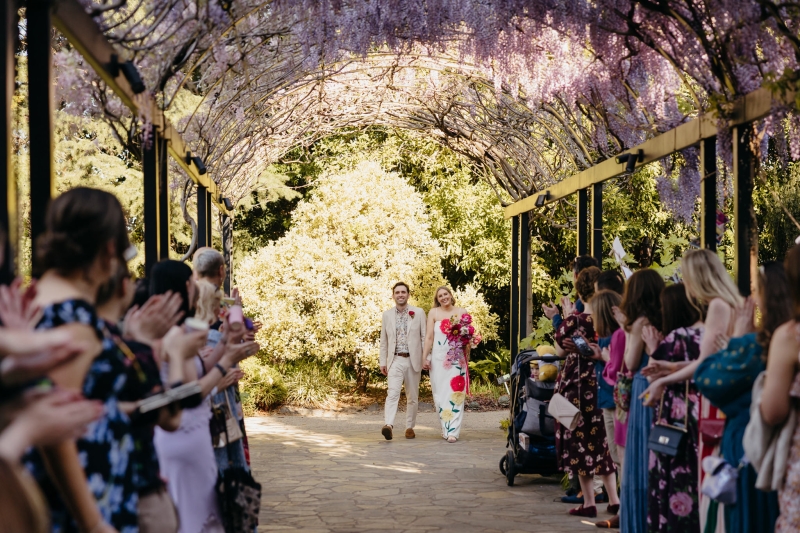 6. Walking down the aisle and seeing the wishing line and our loved ones lining the wisteria arch – we felt their love and support. It was a very emotional moment, and the joy was evident on our faces in the pictures.
