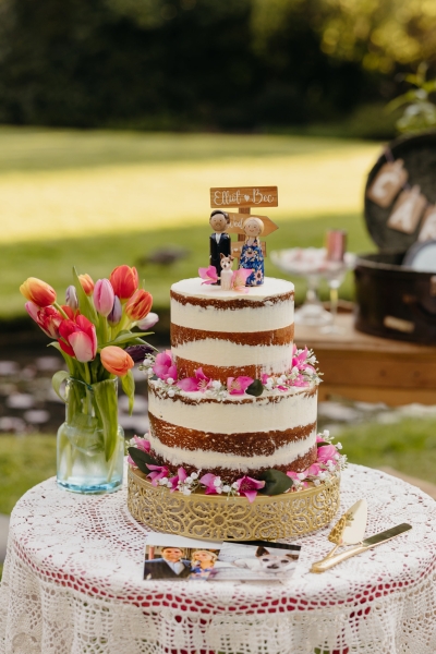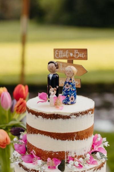 7. Our beautiful friend Sharon surprised us by making us a wedding cake (we had no idea about it!) She also had the little toppers specially painted and made to look like our dog Bonnie and us.”