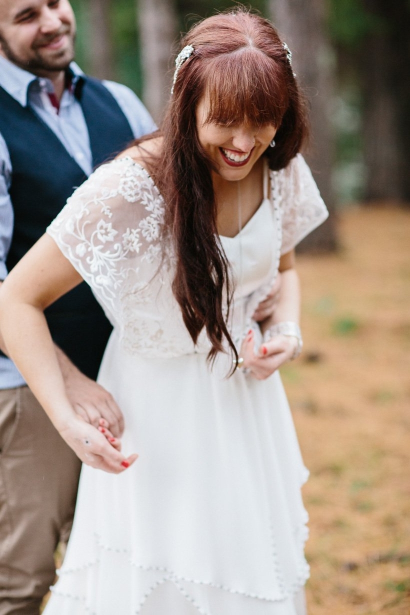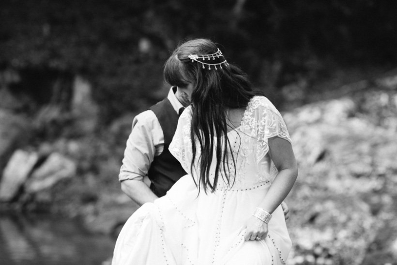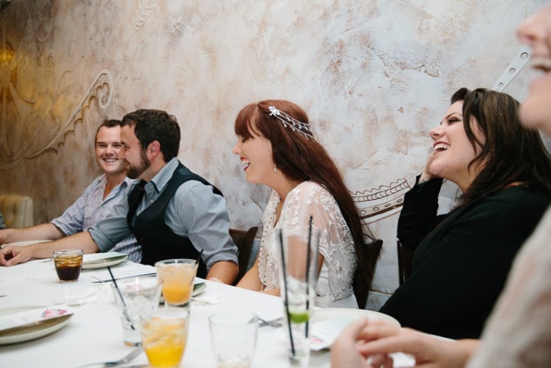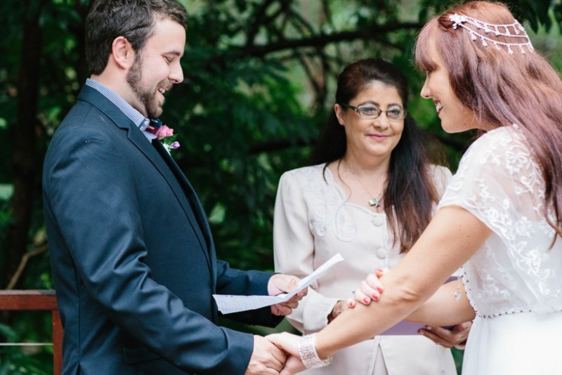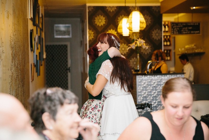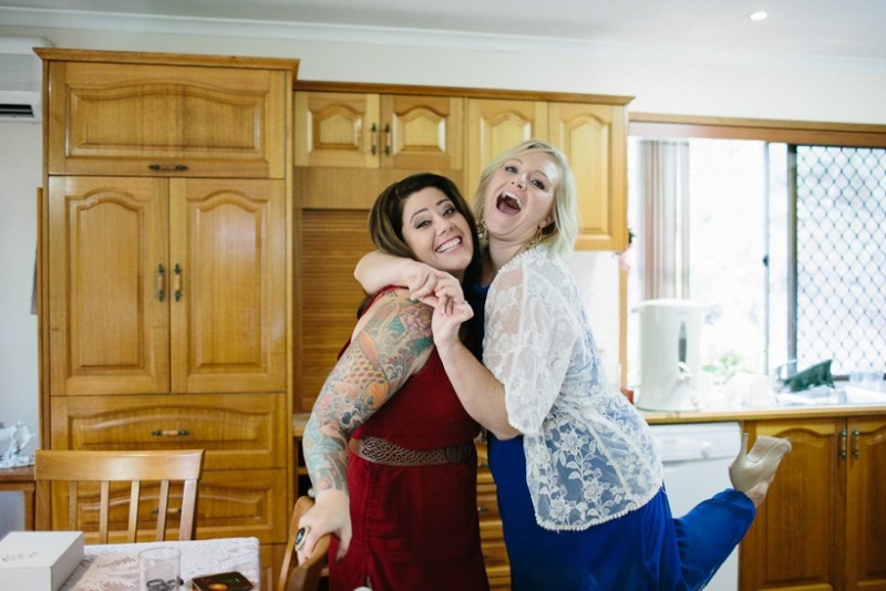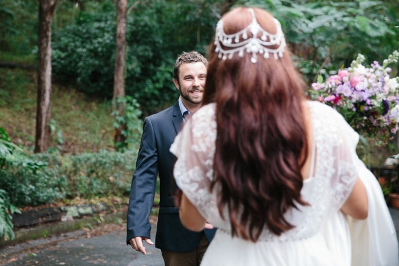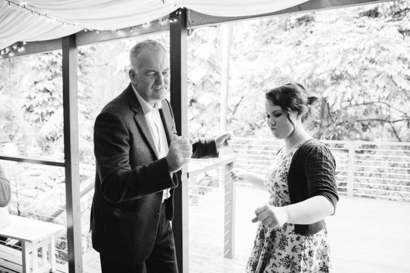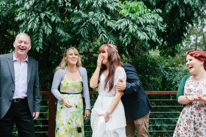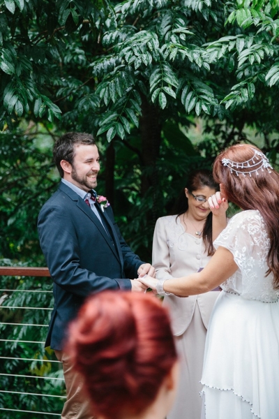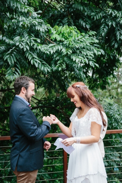 They exchanged vows under the trees where Georgie and her sisters played growing up surrounded by an intimate circle of 21 immediate family and friends (chosen for being significant in their lives as a couple). The couple wrote their own half serious, half funny vows, ”I promise to not hassle you about your Star Wars collections”, which they often remind each other now. They were fussy over food and cocktails which totally paid off. Family mementos saved from Ben’s parents and grandparents’ weddings decorated the space, not perfectly matching but every piece purposefully meaningful. Following a rain-drenched getaway for photos at Currumbin rock pools, Georgie, Ben and their guests shared a relaxed meal at a favourite local restuarant.