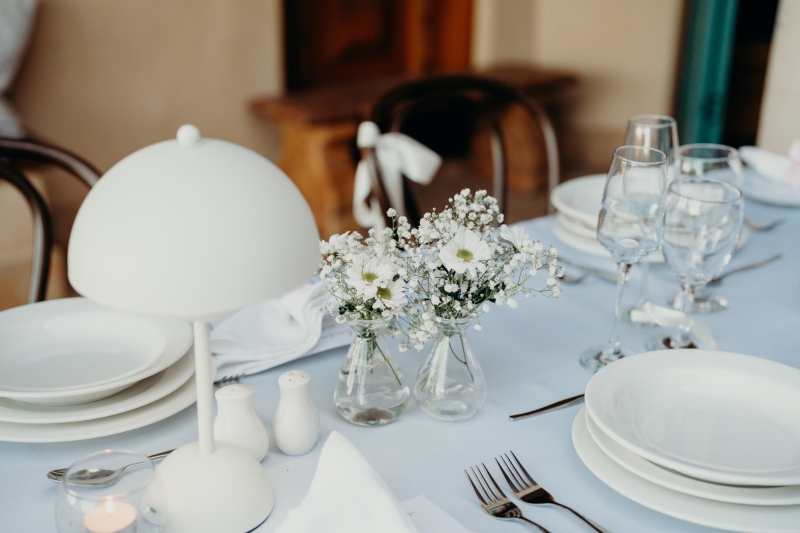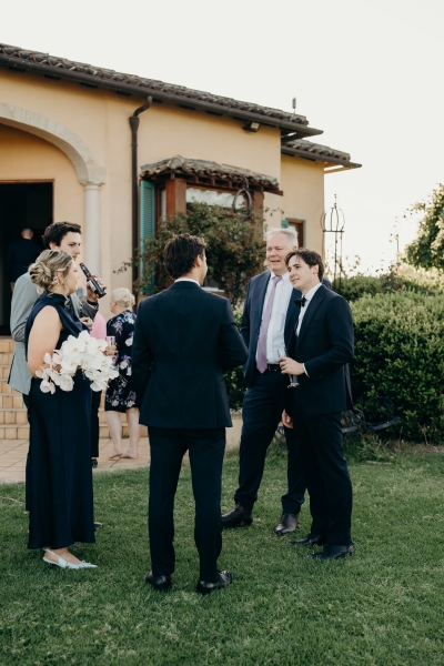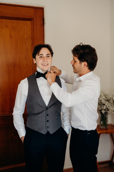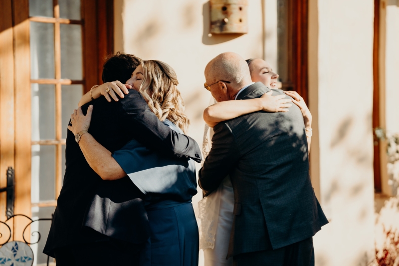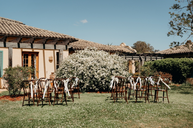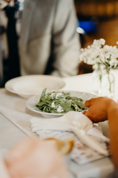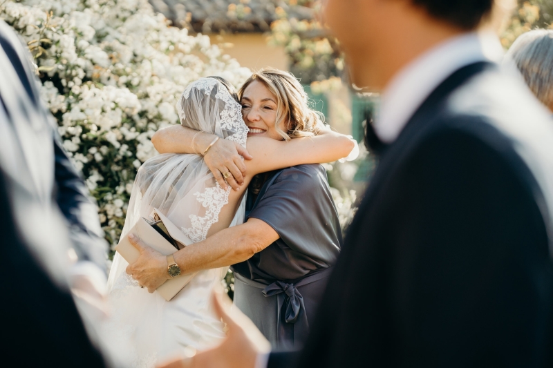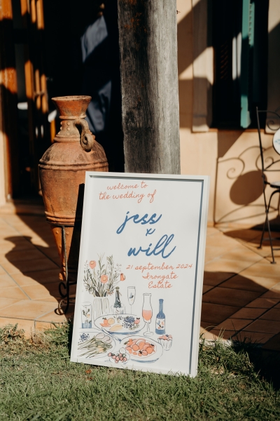 As it was an intimate, family-only ceremony, everyone had a special role in bringing the event to life. “The chairs were hired, the decorations were handmade, and the signage from Etsy completed the look. Everyone had a special role to play, from Nonna adding bows to the chairs to family members ironing tablecloths or setting up drinks and nibbles tables for afterwards. We also had a private chef create the most incredible Italian three-course menu to perfectly match the vibe of the venue.”