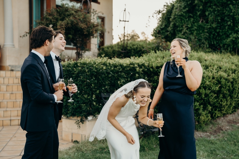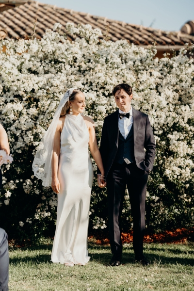 Iron Gate Estate in the Hunter Valley was the perfect location for their family-only ceremony, allowing everyone to soak up quality time the whole weekend. “There aren’t many occasions in life that bring both sets of grandparents together, so we felt incredibly lucky to share that special opportunity. We also loved the Italian vibe of the venue, which felt like the perfect nod to Will’s Italian heritage and was especially meaningful after our special Sicilian proposal.”