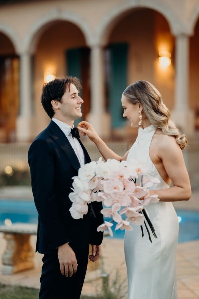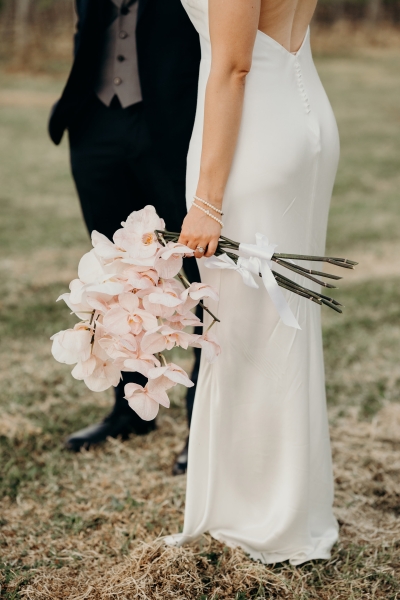 When it came to flowers, Jess wanted to keep things simple with pink and white orchids. Still soft and romantic, yet cohesive with the solo bloom style. “I wanted something unique and simple, but still with a fun pop of colour.”