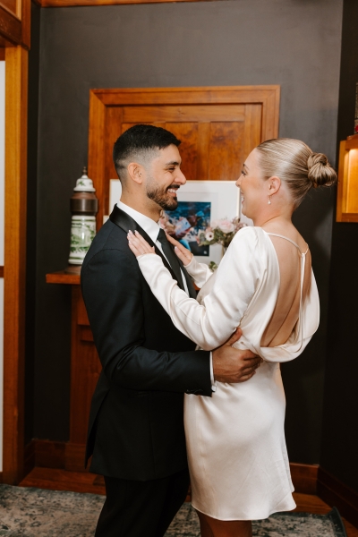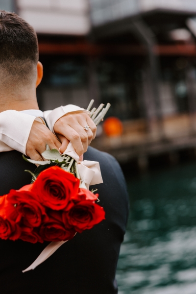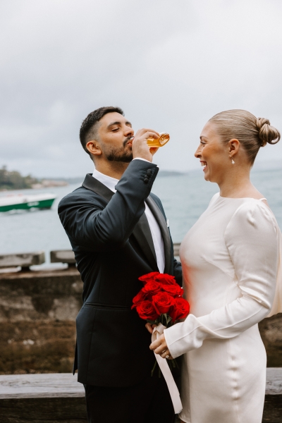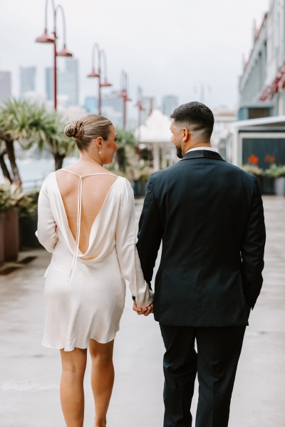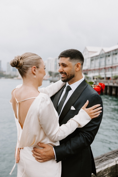 Their entire micro wedding took place at Harbourview Hotel in The Rocks. “We wanted to keep the dinner party relaxed and intimate, and we love the photo location by the water,” Alex explained.