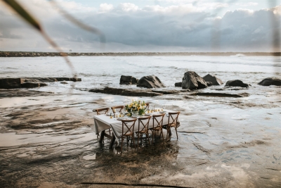 Roses, peonies, faded autumn hydrangeas, grey leaves, variegated ivy, tulips, Australian natives such as white or pink kangaroo paws, pink tea tree, or pale coloured grevilleas, Generous flower arrangements (think Marie Antoinette!) bursting out of the unusual places – half-open console drawers, over archways, along with balustrades, from old metal garden urns, from birdbaths, bird cages.